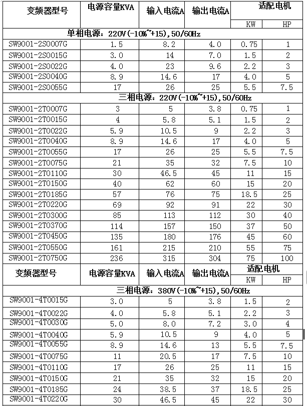 (注:0.4~3kW驅動器最高使用海拔為2000m,如需使用到海拔 2000m以上請聯系廠家)