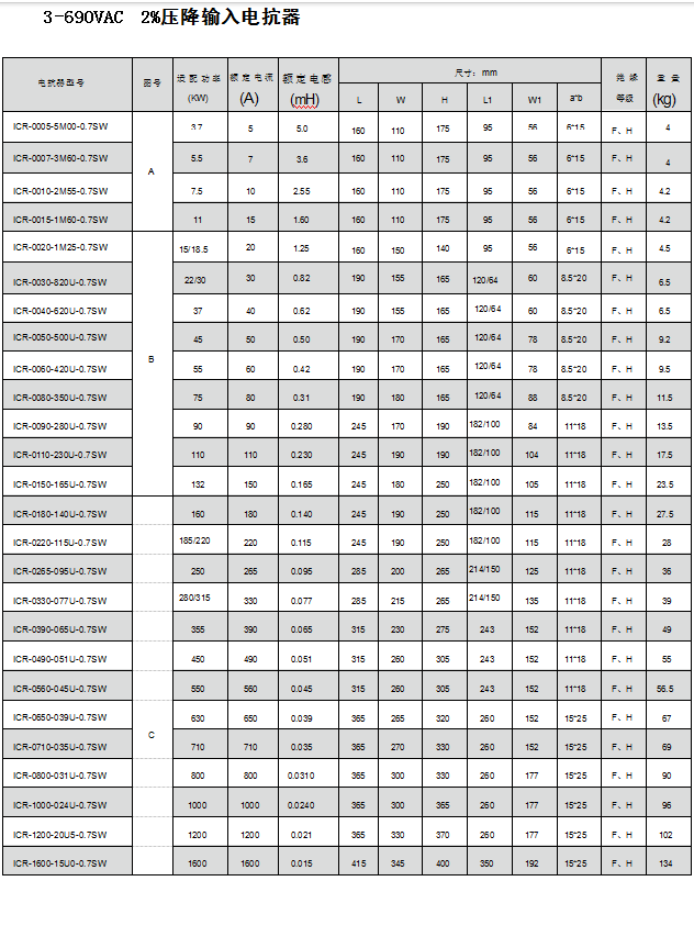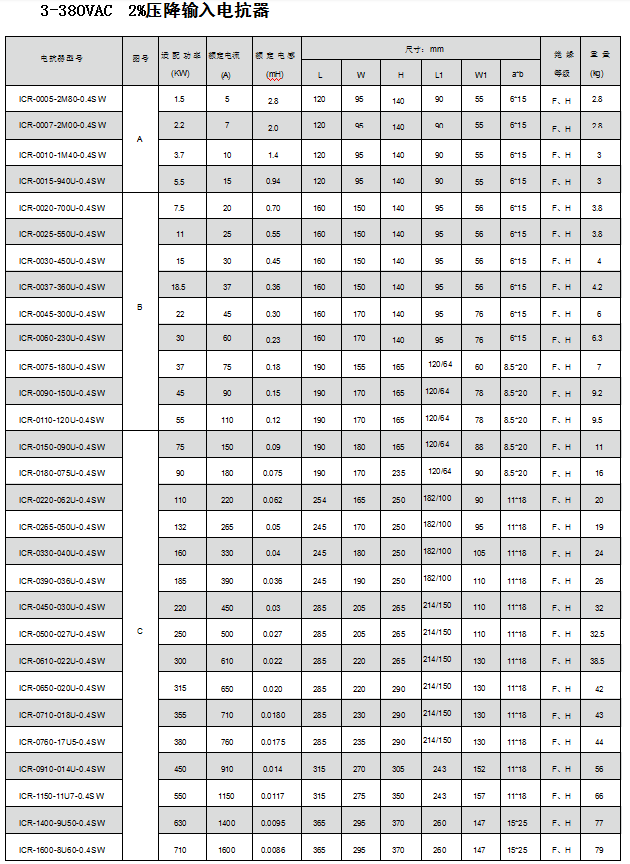 ICR系列產(chǎn)品技術(shù)參數(shù):