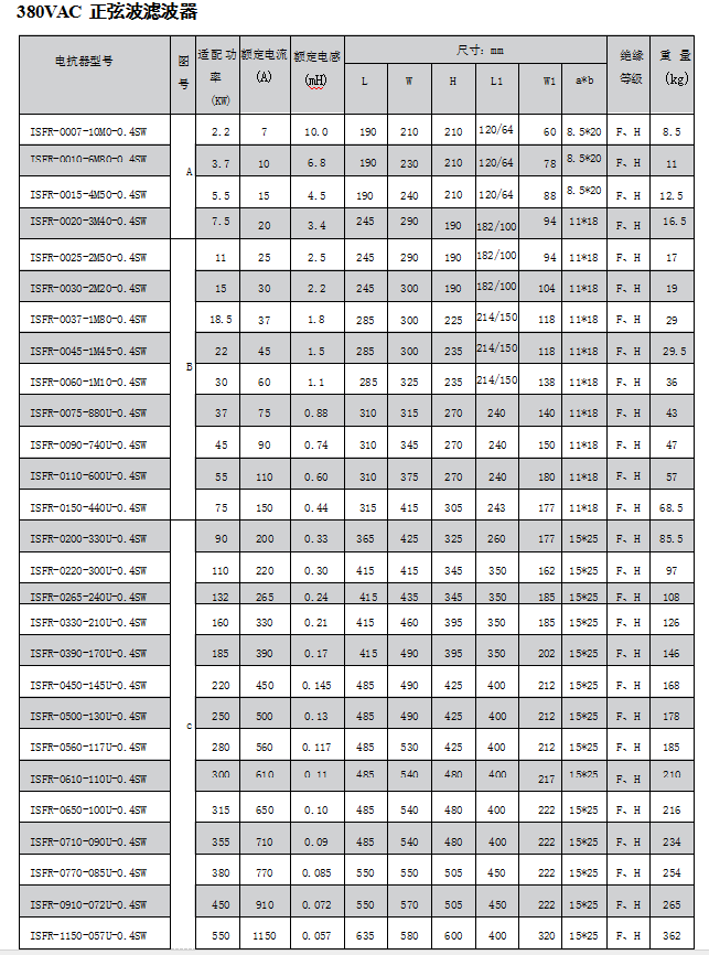 正弦波濾波器是在PWM變頻器驅動下,其開關頻率范圍在2-8kHz之間仍提供正弦波輸出電壓。在變頻器驅動應用中,這種濾波器可以消除電機絕緣失效問題并通過消除與變頻器輸出波形相關的高dv/dt來減少電磁干擾。改善電機的性能和壽命,延長變頻器輸出距離,最長可達3KM。為保護電線電纜,使用正弦波濾波器可防止長引線驅動電機的過電壓問題。在其他能源應用下,比如風力發電機,逆變器將電力通過升壓變壓器還原到實用的配電系統,這種濾波器可以允許使用標準變壓器。滿載并在60Hz時給變壓器輸入的諧波電壓畸變是5%的話,那么滿載時給電機輸入的諧波電壓畸變一般就是5%。